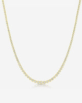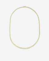 Why We Love It: Delicate gold bezels envelop 55 graduated diamonds, creating a piece that can be worn from day to night. We love this setting because the gold bezel border helps to enlarge the look of the diamonds set within them, and the graduation offers both maximum visual impact, and value.